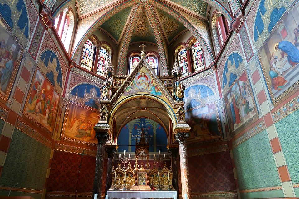 Den Schlussstein des Chorgewölbes ziert das Wappen von Papst Leo XIII., in dessen Amtszeit von 1878 bis 1903 die Simmler’sche Innenausstattung fiel.