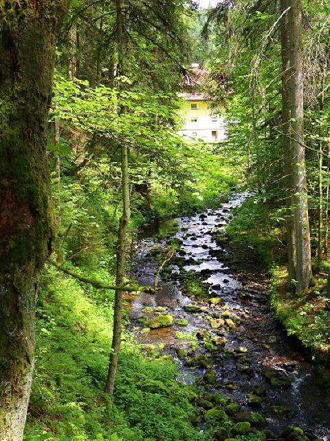Der Pfad hinauf durch die Schlucht führt schließlich in die obere Ravenna zum Gasthaus Scherer. Das urige Wirtshaus mit ursprünglicher Terrasse (Selbstbedienung) ist der ideale Zielpunkt, bevor es wieder zurück zum Ausgangspunkt geht.