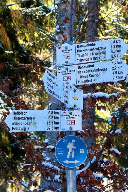 Der Weg führt weiter in Richtung Bankenhansenhof und Bankenhausenhöhe, wo ein steinernes Wegkreuz zum Verweilen einlädt. Über den Mehlbergweg wird die Winterhalde auf der anderen Bergseite erreicht. Es eröffnet sich ein wunderbarer Blick auf das 100 Hektar große Hinterzartener Moor. Nach einem kurzen Wegabschnitt auf dem Winterhaldenweg entlang der Höllentalbahn ist das Adler-Skistadion zu sehen. Vor dort ist es nur noch ein kurzes Stück bis zum Ausgangspunkt.