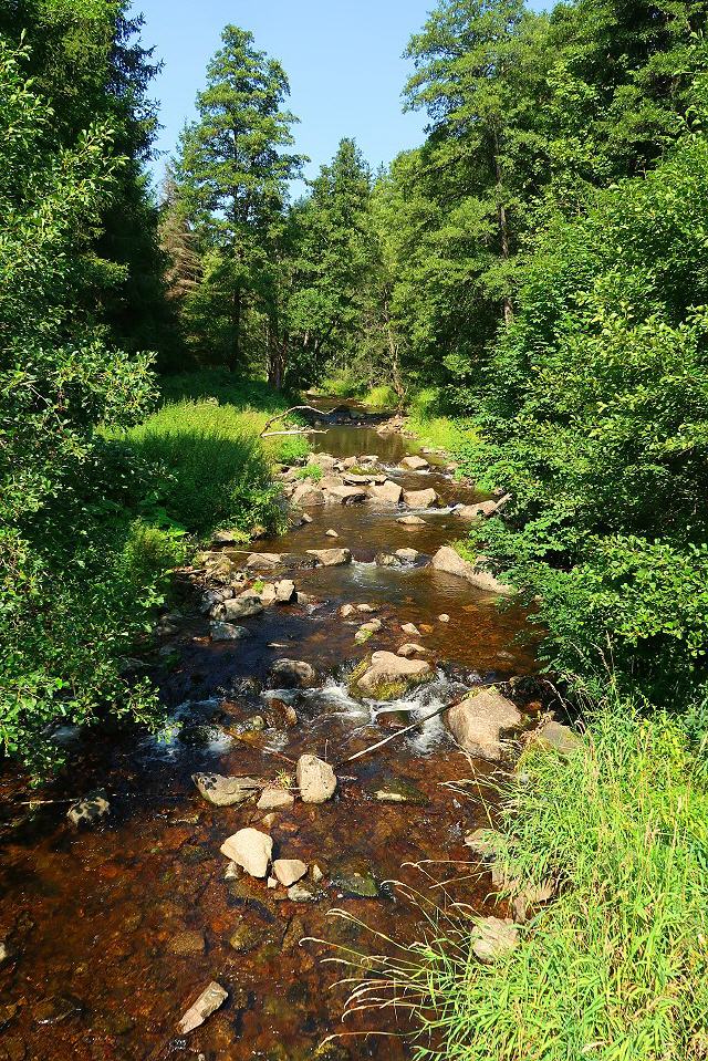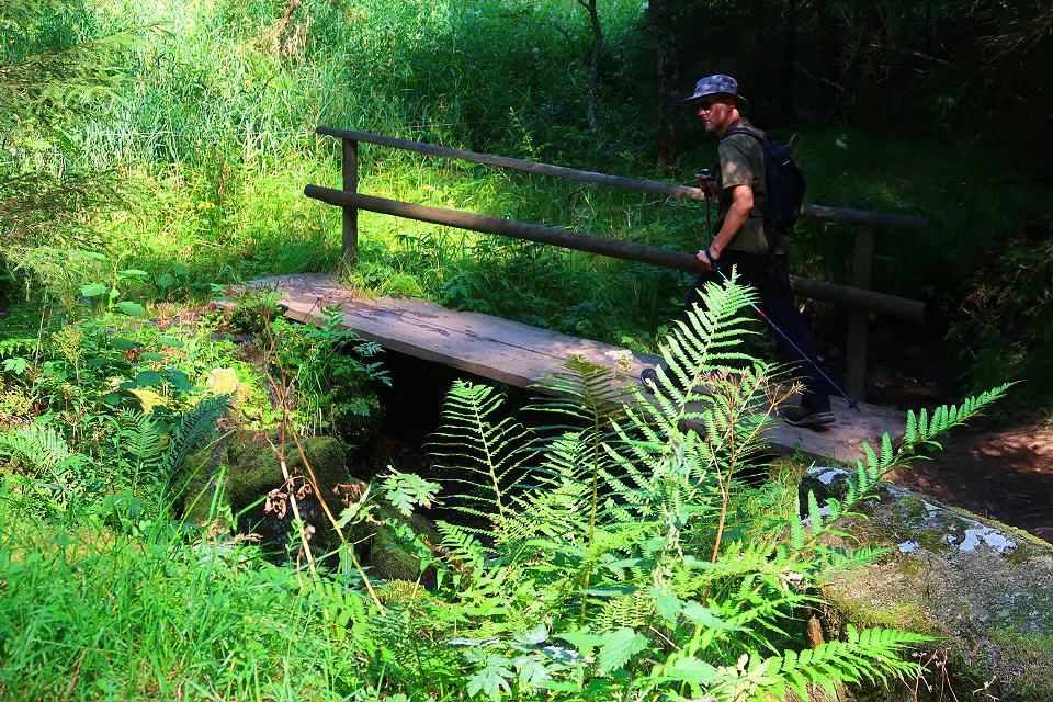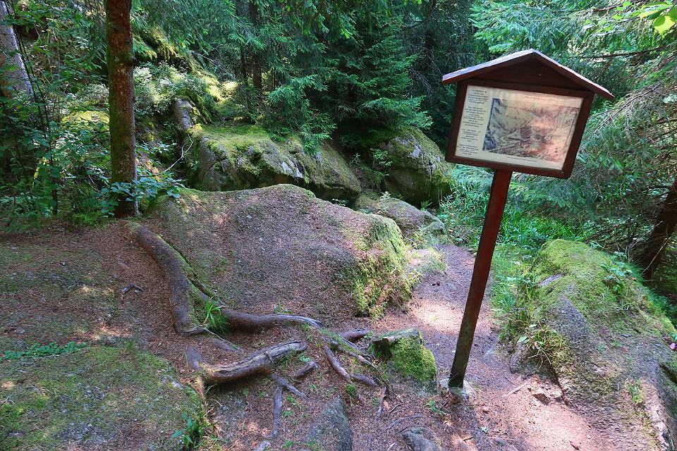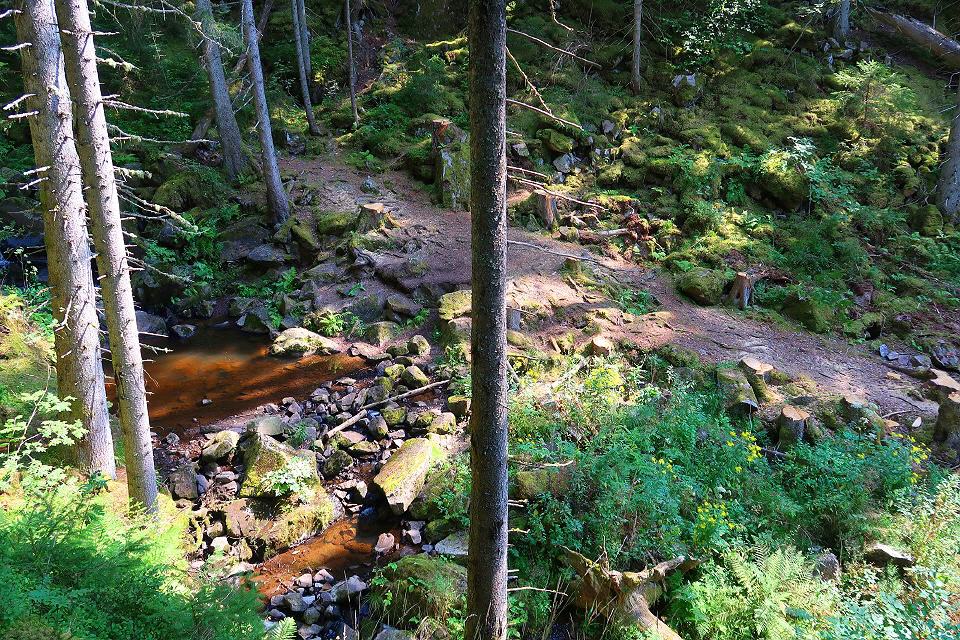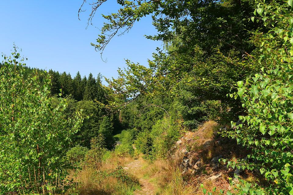 Über einen historischen Fuhrweg geht es steil bergan und weiter entlang einer stillgelegten Bahnstrecke, die heute als "Bähnleradweg" die Schwarzwaldstadt Neustadt mit Bonndorf verbindet. Später geht's auf schmalen Pfaden und teils entlang von Felswänden die wild-romantische Haslachschlucht entlang.