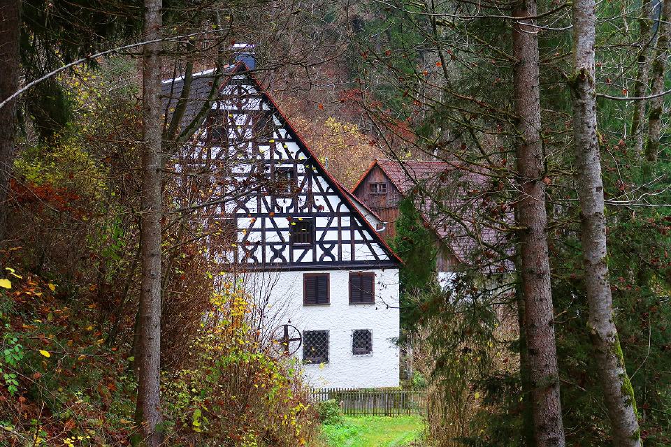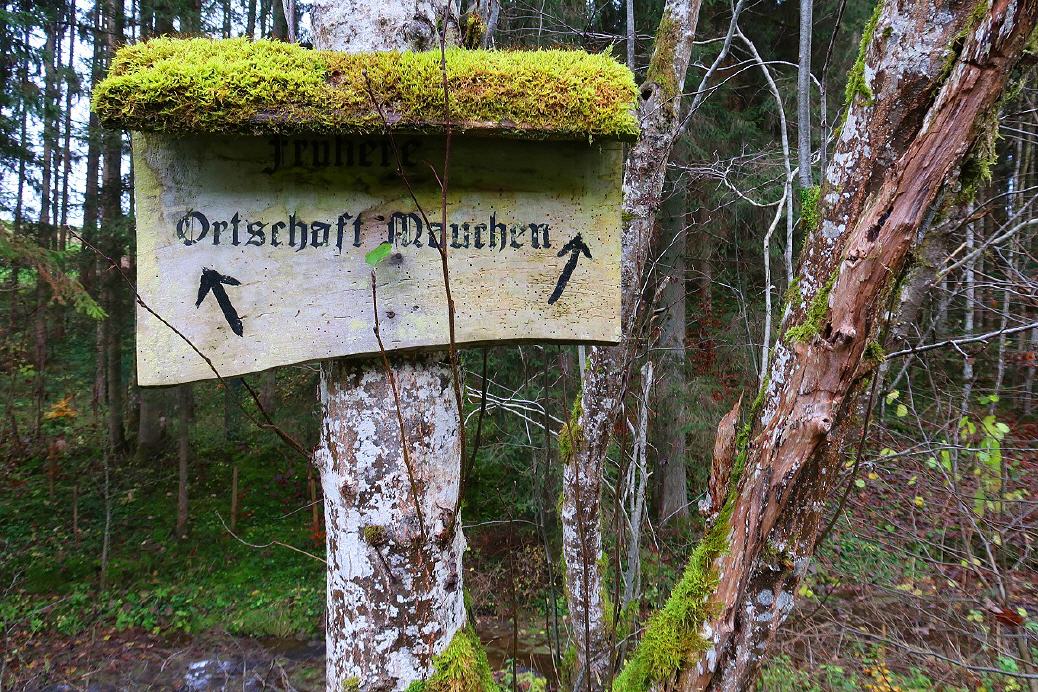 Nach der Unterführung rechts halten. Es kommt ein Fahrweg, dort links einbiegen und weiter rechts neben dem Bach. Nach einem Kilometer wird die Fahrbrücke der Untermauchen erreicht. Diese Brücke nicht überqueren, sondern weiter rechts dem Bach entlang. Ein Schild „frühere Ortschaft Mauchen“ erinnert an das vor etwa 500 Jahre aufgegebene Dorf Mauchen.