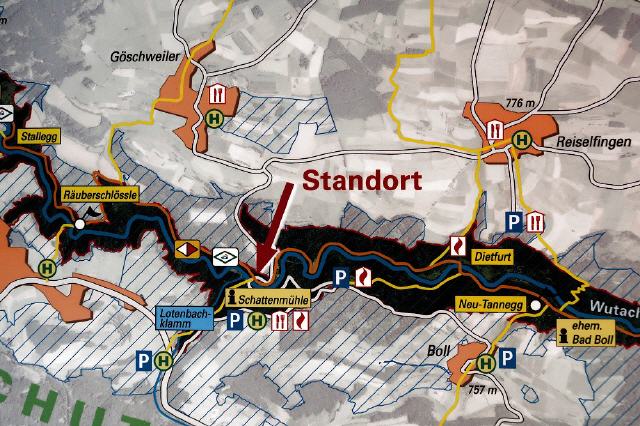 Unterhalb von Reiselfingen, einem auf der Sonnenseite der Wutachschlucht liegenden und nicht einmal 600 Einwohner zählenden Ortsteil von Löffingen, verläuft eine alte Handelsstraße. Der Übergang über die Wutach war bis 1873 die einzige Verbindung zwischen Löffingen und dem Bonndorfer Gebiet. Hier war einmal die Siedlung Dietfurt mit Mühlen und einem Gasthaus. Der Weg verläuft auf dem alten Fernweg aus der Zeit der Römer, doch heute zeugen von Ditfurt nur noch Mauerreste.
