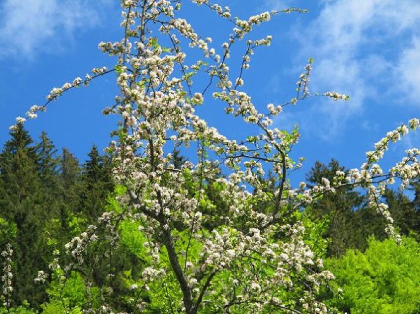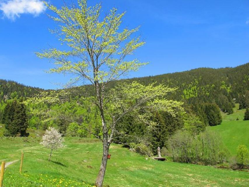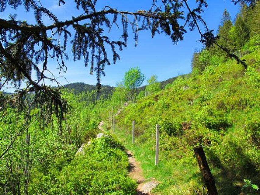 Beginnend am Mösle-Parkplatz (880 m) geht es, nachdem wir die Menzenschwander Alb überquert haben, kurz durchs Hinterdorf, vorbei an typischen Schwarzwaldhöfen. Am Schwarzbergweg biegen wir links ab und gehen das Asphaltsträßchen bis zum Ende bergauf. Nun folgen wir einem schmalen Pfad. Auf halber Talhöhe folgen wir dem Wildapfelpfad. Nach wenigen Metern sehen wir im Westen ins Krunkelbachtal und in der Ferne das Herzogenhorn (1415 m). Die höchste Erhebung im Landkreis Waldshut. Denn dieser Zipfel am Feldbergmassiv gehört politisch zum Landkreis am Hochrhein. Gleich oberhalb beginnt der Breisgau-Hochschwarzwald.