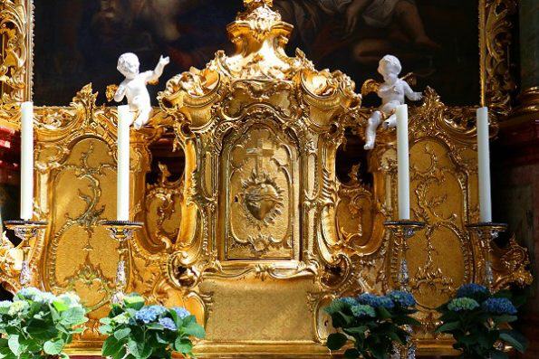 Beim Betreten der einschiffigen Kirche entfaltet sich die Pracht des «himmlischen Thronsaales», die mit ihrem Lichtspiel und den Details der Ausstattung zum Hochaltar als Abbild des Thrones Gottes und damit zum Ziel einer Wegkirche hinführt.