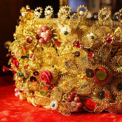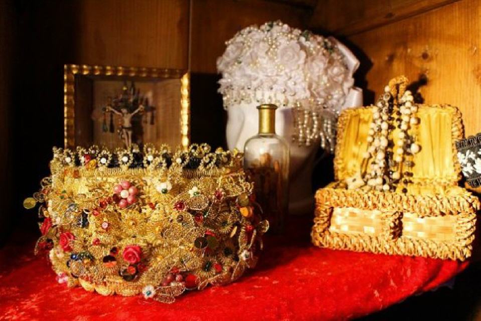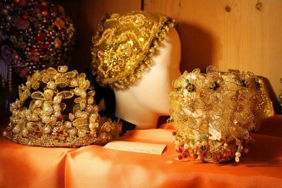 Ein Blick in die weiteren Räume verrät, auf was Helga Reichenbach spezialisiert ist. In den Schränken und auf den Truhen und Tischen sind zahllose Trachten, Brautkronen, Schäppel und Käppchen zu sehen.