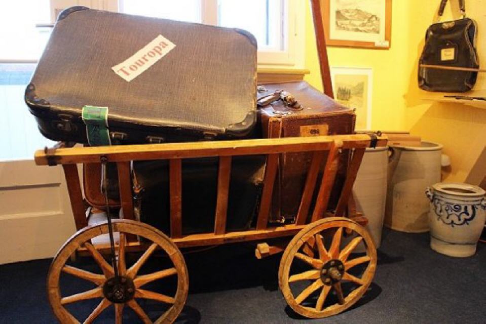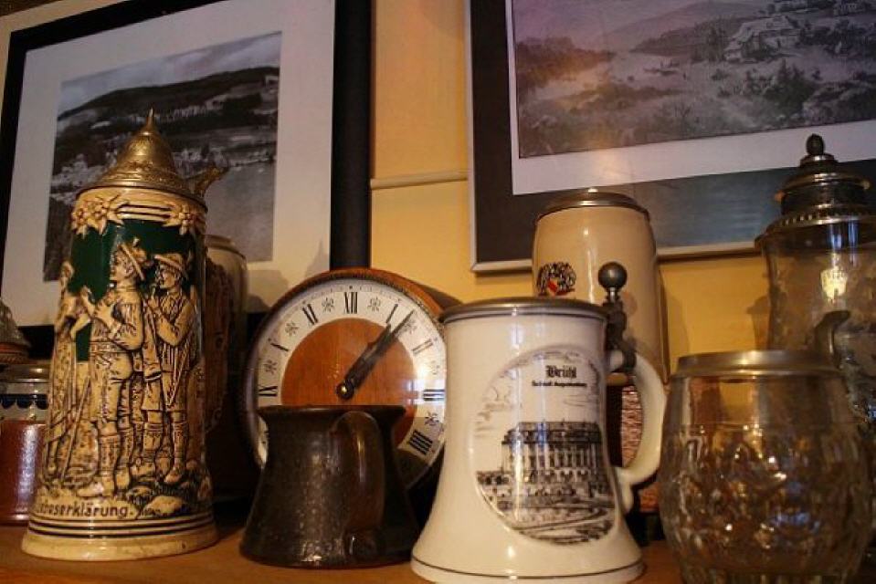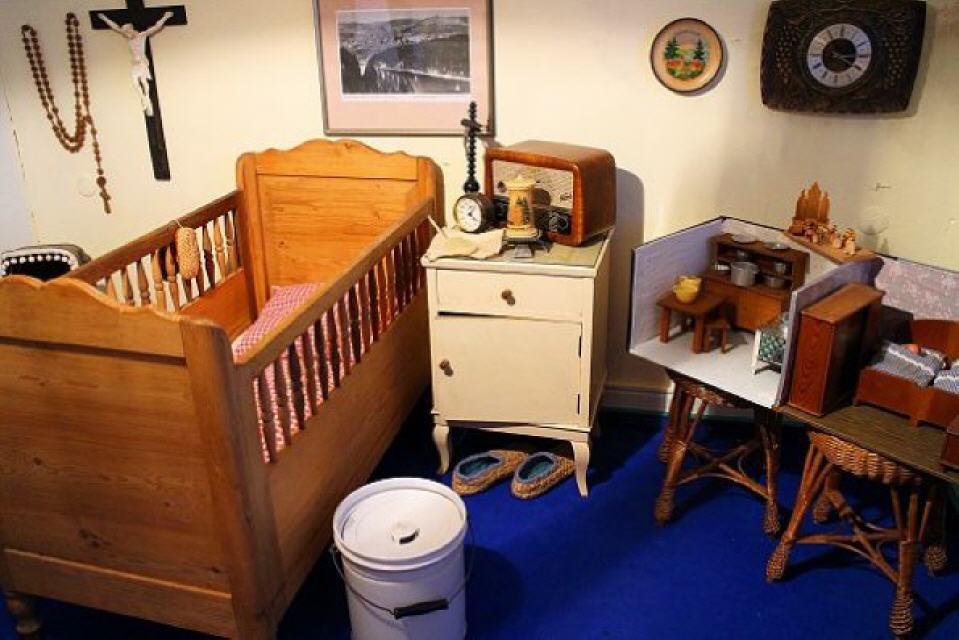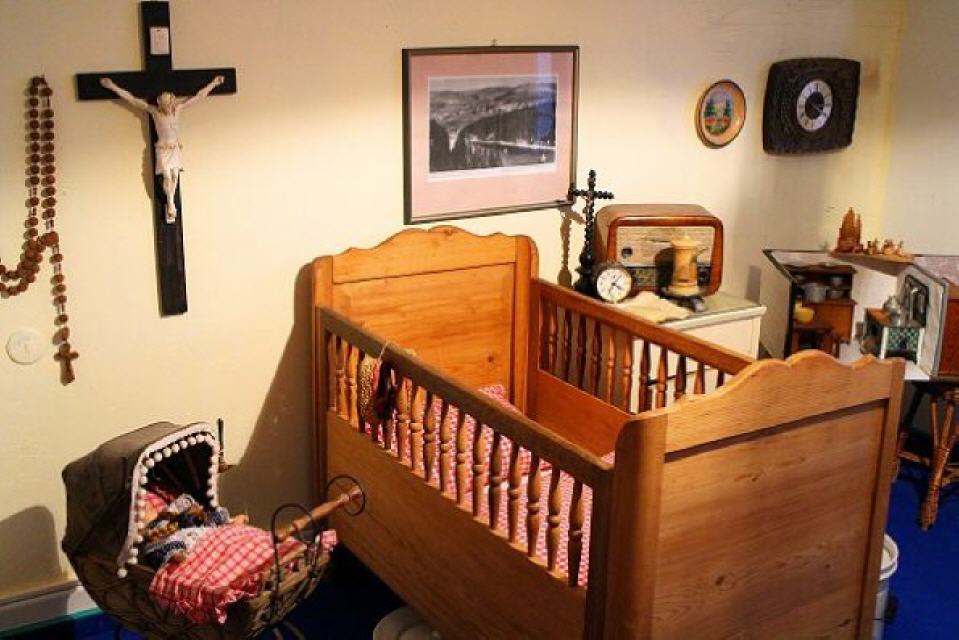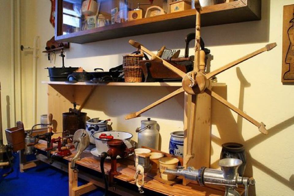Wer etwas Zeit mibringt, dem werden Einblicke auf einen weiteren Stockwerk des alten Hauses gewährt. Dazu ruft sie allerdings Heinrich Kopp herbei. Der Schluchseer hat auf einer eigenen Etage ein kleines Heimatmuseum eingerichtet. Wenngleich sie nicht so recht den Begriff “Museum” mögen und eher von einer “Sammlung” sprechen, so zeigen die Räume doch mehr. Zahllose Exponate aus der Geschichte Schluchsees sind hier vertreten, darunter sogar eine uralte Schulbank mitsamt den damaligen Karten, Klassenbüchern und Fotos. In einem anderen Raum sind Gebrauchsgegenstände aus der Anfangszeit des vorigen Jahrhunderts zu bewundern. In einem Glasschrank hütet Heinrich Kopp der die Exponate zusammengetragen hat, alte Fotoapparate, wie sie damals die Urlauber, die “Sommerfrischler”, hierher nach Schluchsee brachten. Spielzeug, Puppenstuben und vielerlei andere weitere Kostbarkeiten lassen den Betrachter staunen und alte Erinnerungen wach werden.