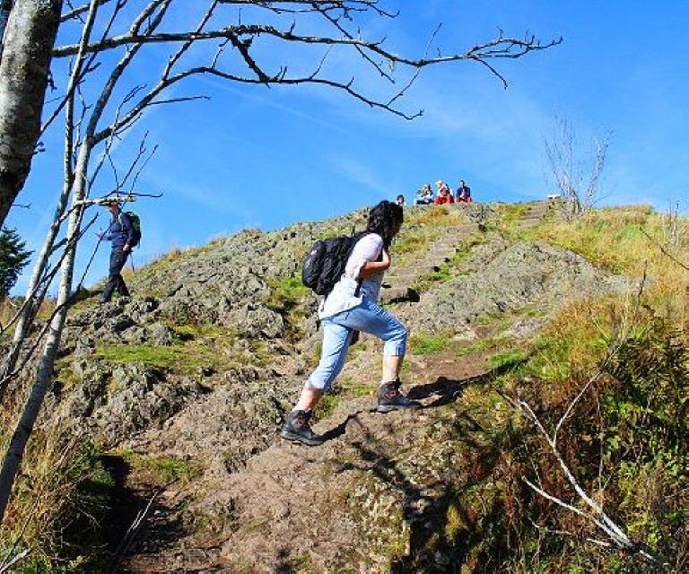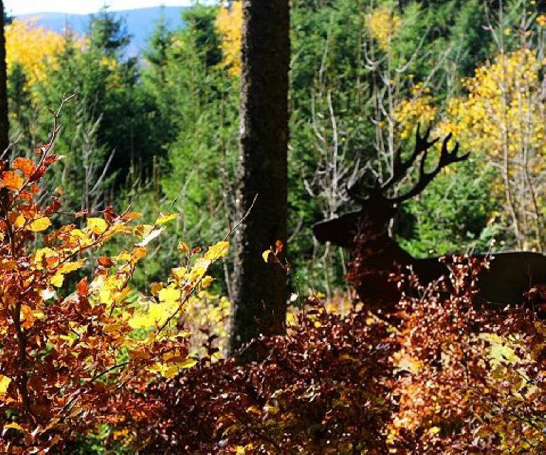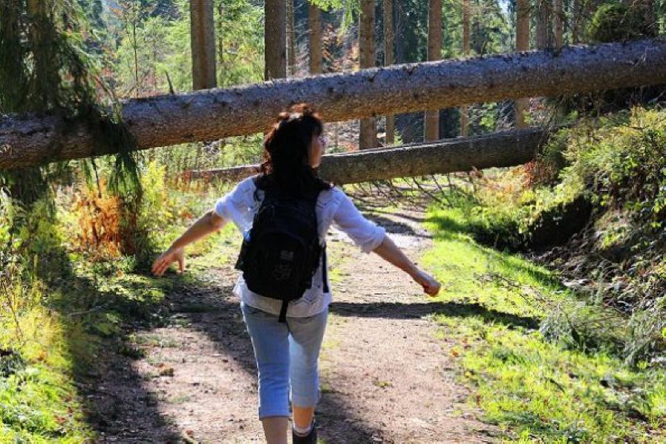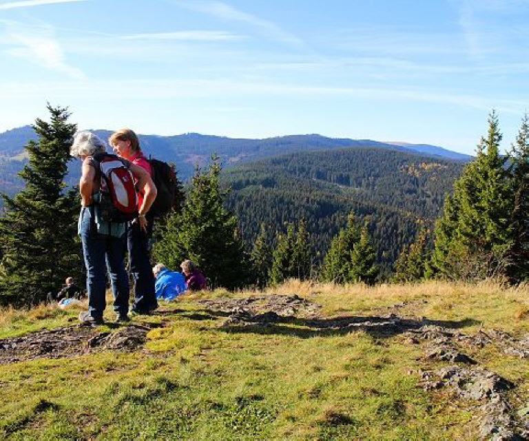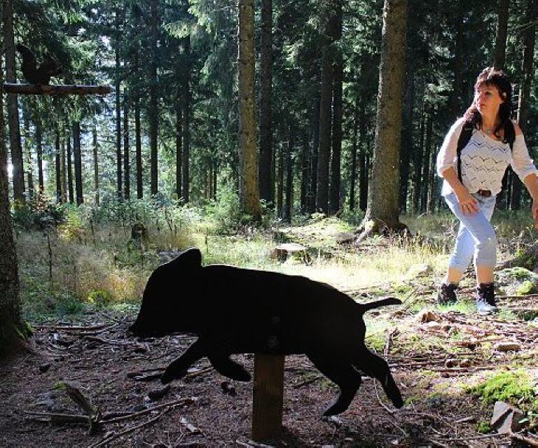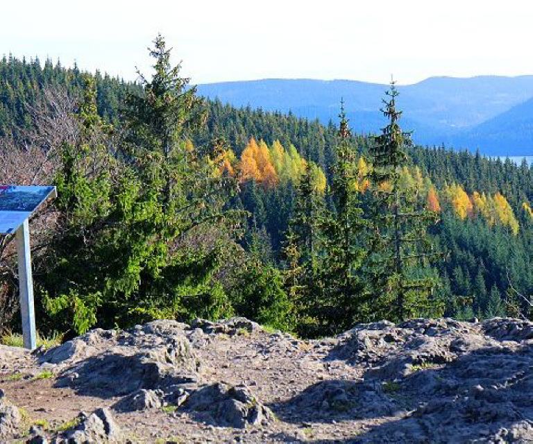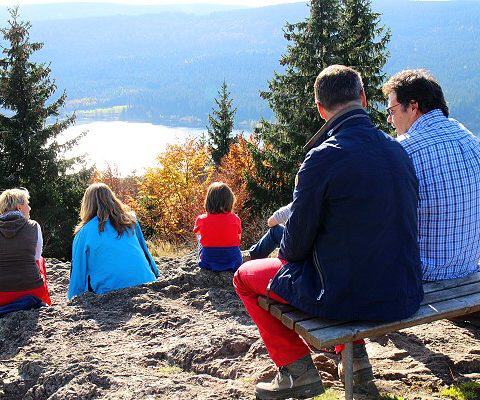 Von hier aus laufen wir zum Hanselefelsen, biegen anschließend links ab und kommen auf einen breiteren Weg. Nach kurzer Zeit eröffnet sich ein toller Ausblick! Über den Ahaberg folgen wir dem Weg in Richtung Bildstein. Auf diesem Wegstück bietet sich die Möglichkeit den direkten Weg zum Bildsteinfelsen fortzuführen oder auf dem neu angelegten Nebenpfad „Pirschpfad“ neue Entdeckungen zu machen. Am Aussichtspunkt Bildstein angelangt genießen wir einen atemberaubenden Blick auf den Schluchsee.