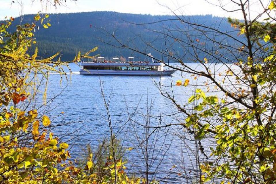 Nach einer kurzen Pause geht es mit frisch getankter Energie auf einem schmalen Pfad hinab nach Unteraha. Hier wandern wir bis zur Bootsanlegestelle und folgen dem Seerundweg zur Amalienruhe. Von der Landzunge aus eröffnet sich ein herrlicher Blick über den See. Anschließend führt uns die Tour weiter in Richtung Schluchsee-Ort, wir überqueren jedoch die Fußgängerbrücke um auf die andere Seite der Bahnschienen zu gelangen. Von hier aus laufen wir am Café am See vorbei, zurück zum Wanderparkplatz.