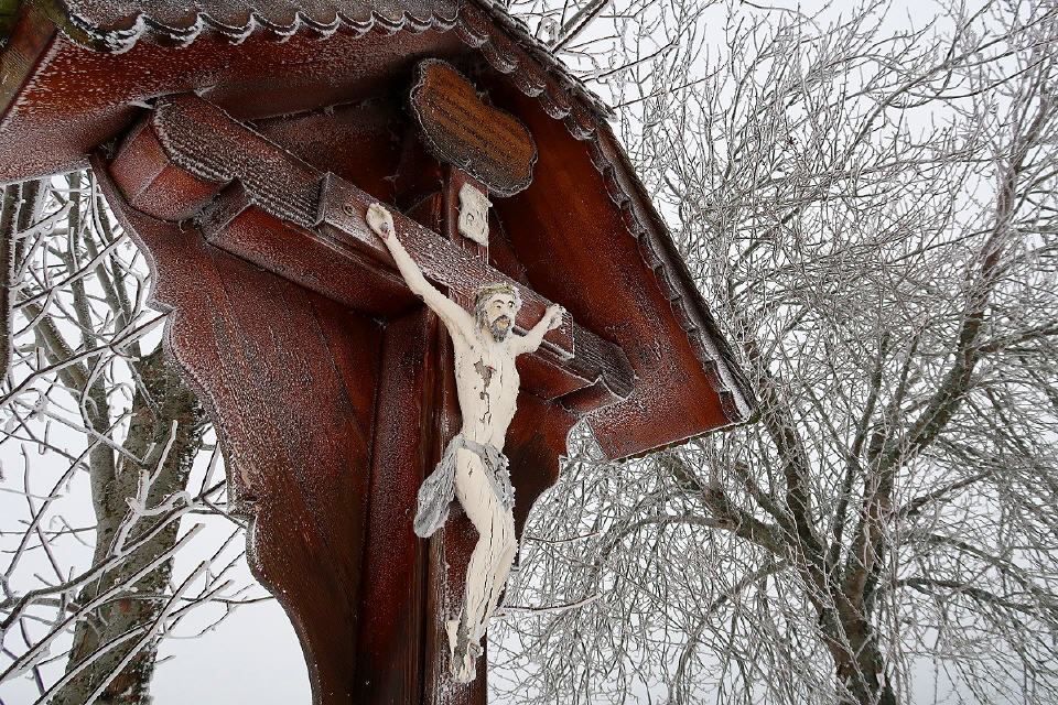 2. Route: Rückentrage für Kleinkinder erforderlich (zum Teil unbefestigte Pfade), 20 Gäg-Stationen, 5 km (1,5 bis 2 Stunden). Ab Wanderparkplatz (Grill- und Spielplatz) bis zum Russenkreuz auf der Hochebene wie Route 1. Dort jedoch geradeaus gehen, dem Förster-Dinger-Weg folgend, an der Skihütte vorbei, durch einen Waldabschnitt bis zur Hellewanderkapelle. Kurz nach der Kapelle geht es links weiter, bis man oberhalb einiger Schwarzwaldhöfe den Wald verlässt. Hier verläuft die Route links am Waldrand auf einem schmäleren Pfad, bis man wieder die Skihütte erreicht. Jetzt muss man nur noch bis zum Russenkreuz laufen, rechts abbiegen und man gelangt zurück an den Startpunkt.