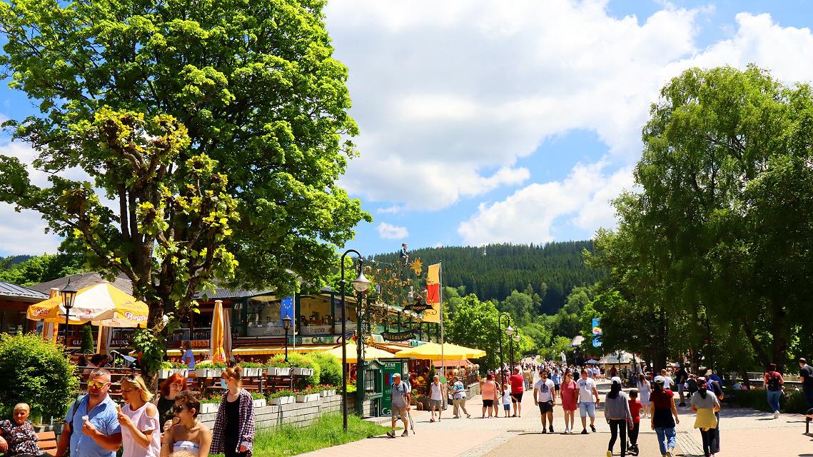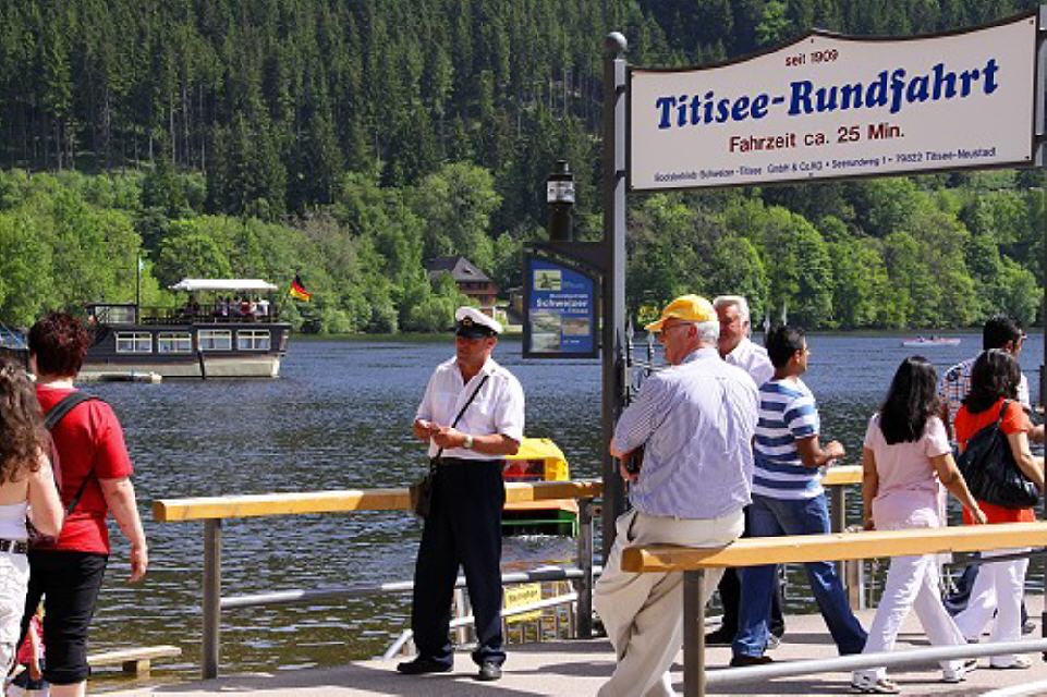 Er ist in aller Welt bekannt: der Titisee. Er bedeckt eine Fläche von 1,3 Quaddratkilometer und ist durchschnittlich 20 Meter tief. Seine Entstehung verdankt er dem Feldberggletscher, dessen im Pleistozän gebildete Moränen heute seine Ufer begrenzen. Der Ausfluss des Sees auf 840 Meter ü.d.M. ist die Gutach, die zur Wutach wird und die wildromantische Wutachschlucht bildet. Am Nordufer liegt der gleichnamige Kurort, Teil der Stadt Titisee-Neustadt. Souvenirläden und Cafés säumen die verkehrsberuhigte Seepromenade.