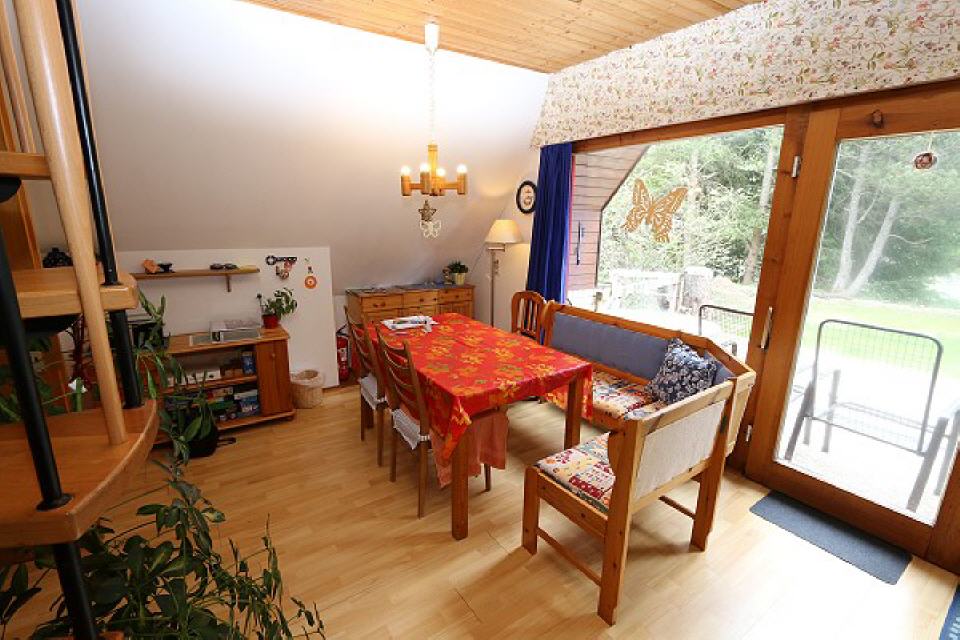 Unser Ferienhaus ist ein nach dem Prinzip der Finnhütte erbautes Architektenhaus. Es ist von Anfang an als Freizeitdomizil konzipiert und eingerichtet worden. Mit seinem urigen und gepflegten Ambiente bietet Ihnen unser “Tätzle” maximale Erholungsmöglichkeiten. Nutzen Sie die direkt vom Wohnbereich zugängliche Südterrasse mit Markise oder die Rasenfreifläche z.B. zum Sonnenbaden, Boccia spielen und vielem mehr. Oder genießen Sie die Ruhe und das Rauschen der Bäume. Selbstverständlich finden Sie eine Vielzahl von Freizeitaktivitäten, Spielplatz, Gaststätten, Kulturellem im nahen Umfeld. In nächster Umgebung liegen der Bibersee, der Windgfällweiher, Minigolf, Sportplatz, Restaurants und schöne Wanderwege.
