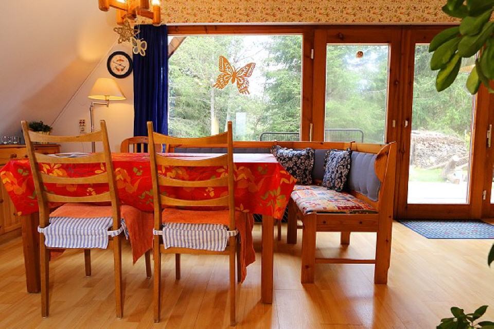 Sie bewohnen unser kleines mit Holzschindeln gedecktes Ferienhäusle alleine. Es ist gemütlich eingerichtet und hat u.a. eine komplett ausgestattete Küche. Es bietet die ideale Ausgangsbasis für Ihren perfekten naturnahen Erholungsurlaub.