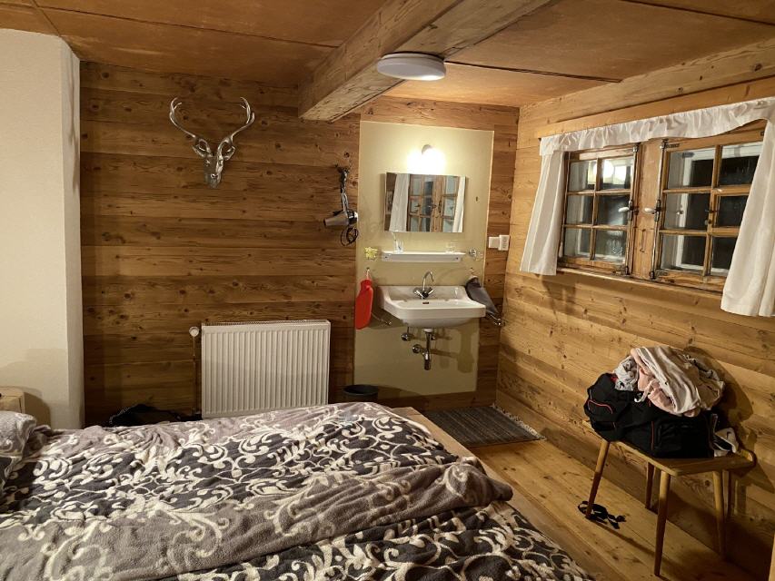 Modern & Komfortabel. Dusche und WC wurden renoviert, jedes Zimmer verfügt über separate Waschbecken. Strom, Zentralheizung, Kachelofen, Pufferspeicher und WLAN sind vorhanden.
