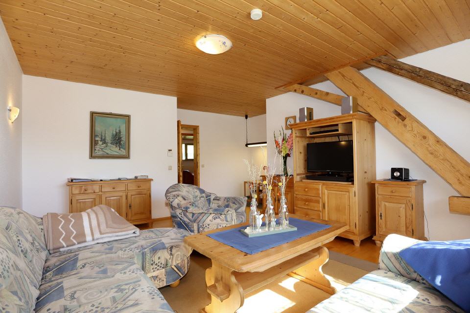 Die Ferienwohnung auf dem Clemenshof in Feldberg-Falkau im Hochschwarzwald liegt auf der Südseite des Tales zwischen Altglashütten und dem Titisee. Die Nichtraucher-Fewo im 2. Stockwerk hat bis zu 3 Schlafzimmer und 2 Bäder. Sie ist geeignet für 2 bis 6 Personen.