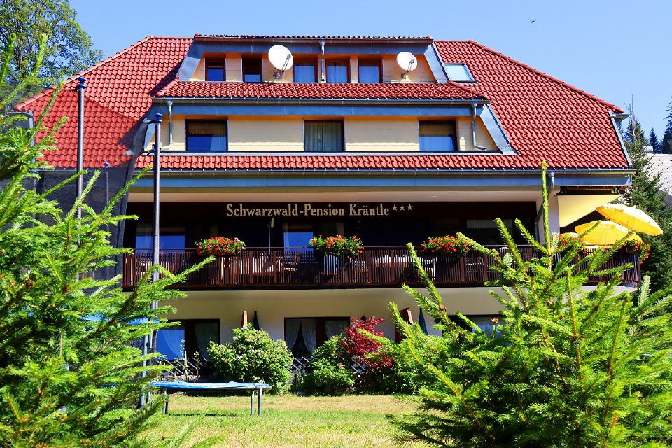 Die Hotel-Pension Kräutle und der Berghof Kräutle liegen an einem ruhigen, sonnigen Südhang im Ortsteil Neuglashütten in Feldberg. Die Hotelzimmer und Ferienwohnungen sind im gemütlichen Landhausstil eingerichtet und lassen keine Wünsche offen. Liegewiese, Restaurant und Wellness-Oase vorhanden.