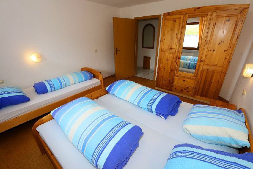 1.Schlafzimmer mit Doppelbett und Einzelbett, 2.Schlafzimmer mit Doppelbett. Die komplette Ferienwohnung ist mit Fliesen und Korkboden ausgestattet. WLAN gratis, Glasfasser-Anschluss. Bettwäsche gratis.