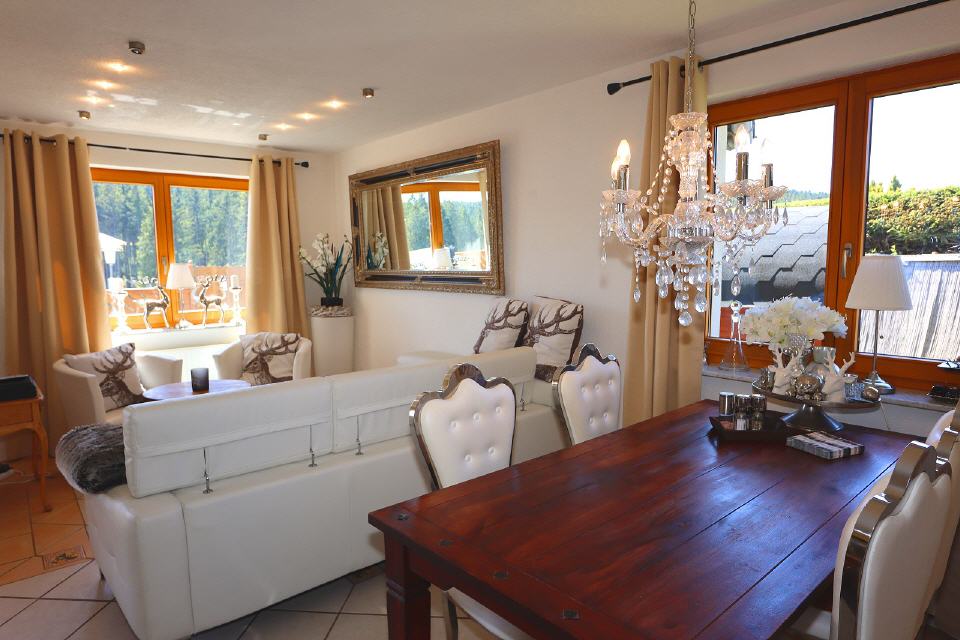 Das Sonnenhüsli ist ein besonders reizvolles, eingeschossiges Ferienhaus zwischen Titisee und Schluchsee im Schwarzwaldort Lenzkirch (Ruhbühl) gelegen. Das auf 900 Höhenmeter gelegene Ferienhaus ist liebevoll ausgestattet. Viele Details tragen zum besonderen Ambiente des Hauses bei. Antiquitäten, schöne Spiegel und Bilder wurden geschmackvoll arrangiert. Die angenehme Beleuchtung trägt für ein besonderes Raumklima bei. Der im Garten befindliche Whirlpool ist das ganze Jahr auf 36 Grad beheizt. Auch befindet sich auf dem Grundstück eine Wellnesshütte sowie eine Fassauna, so dass schlechtes Wetter keine Chance hat. Hunde sind bei uns herzlich willkommen, da Sie sich in dem auf 1,80 m uneinsehbaren, eingezäunten Grundstück austoben und Frauchen und Herrchen nach Herzenslust entspannen können.