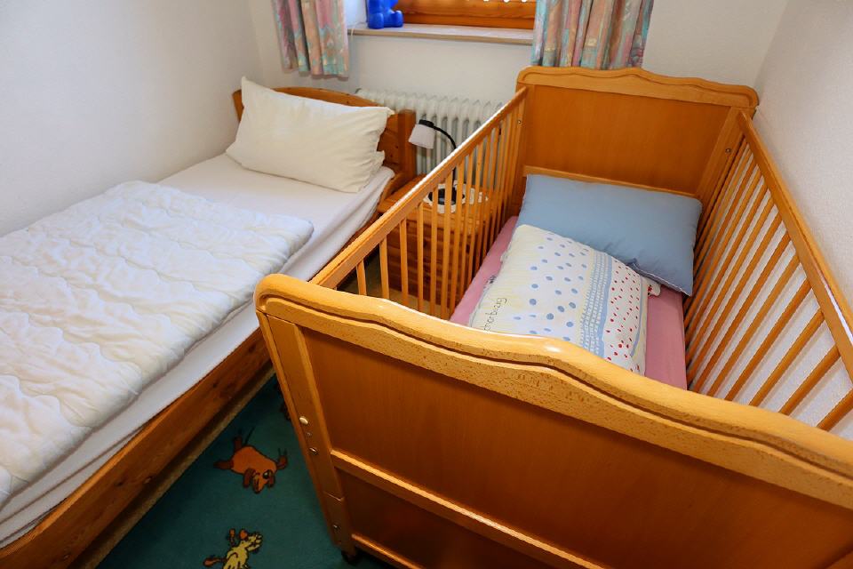 - 1 Zimmer mit 1 Bett und Kinderbett