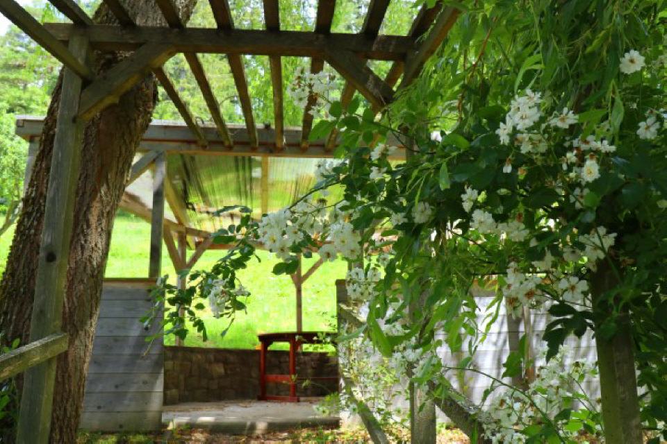 Liebevoll renoviertes Ökonomiegebäude: Auf der Suche nach Idylle? Der Anbau zum früheren Ökonomiegebäude wurde liebevoll renoviert ist heute ein Ferienhaus mit zwei Schlafzimmern für bis zu acht Personen. Idyllisch unter einem Ahornbaum gelegen hat das Haus eine Holzterrasse mit großer Sitzgruppe und Grill.