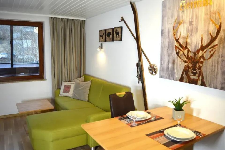 SN - „Schwalbennest“ für 2-3 Personen mit Balkon: Schickes Apartment für 2 Personen, 1 Wohnzimmer mit Flachbild-TV 55”, Radio, Sofa mit Schlaffunktion, Esstisch mit 4 Stühlen, Schlafzimmer mit Boxspring-Doppelbett und Kleiderschrank, Tageslicht-Küche, mit Mikrowelle, Spülmaschine, 4-Plattenherd und Backofen, Wasserkocher, Kaffeemaschine, Toaster, Duschbad / Toilette mit Fön, Süd-Balkone mit schöner Aussicht Richtung Radon-Vitalbad und Wildpark