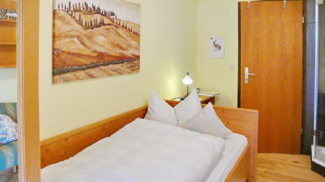 - Zimmer 4: 10 qm, pro Person und Nacht, je nach Saison 38 bis 44 Euro