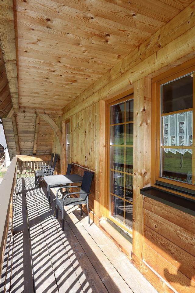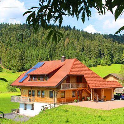 Das Ferienhäusle steht unmittelbar am historischen Bauernhof. Es wurde mit Holz aus dem eigenen Wald gebaut. Die Stämme wurden vor Weihnachten in bester Mondphase bei abnehmendem Mond – mit der Sichel nach unten – gefällt, so wie es schon die Schwarzwälder in früheren Zeiten machten. In dieser Zeit ist das Holz besonders trocken und bietet den besten Schutz. Eine chemische Behandlung ist nicht nötig. Verputzt wurden die Innenwände mit Lehm. Das schafft ein gesundes Raumklima; damit sind die Ferienwohnungen für Allergiker besonders verträglich.