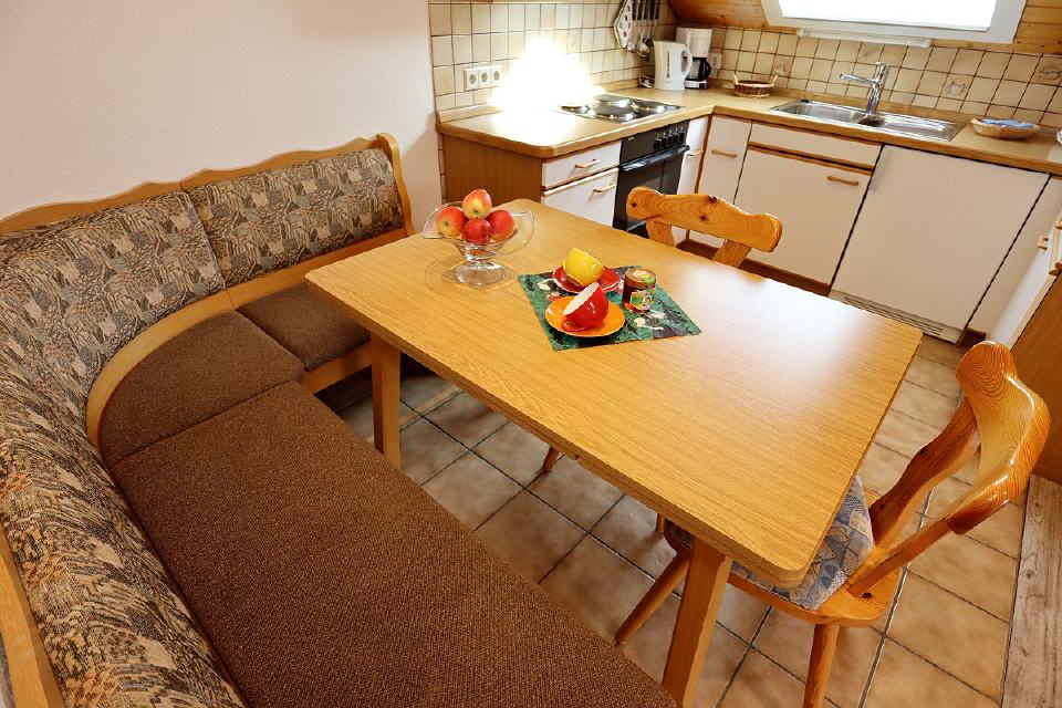 - Im Erdgeschoss befinden sich die Küche, komplett mit Spülmaschine und Backofen, das Wohnzimmer mit Sat-TV und Radio und der ebenerdigen Terrasse mit einer herrlichen Aussicht ins Tal.