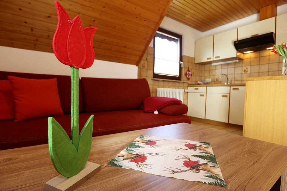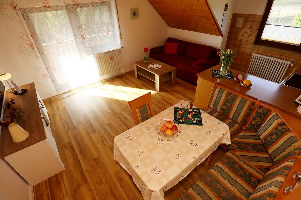 Unser Ferienhäusle steht direkt neben unserem Hof. Es ist sehr geräumig und bietet auf einer Wohnfläche von 65 qm 2 bis 5 Personen Platz. Das Häusle ist komplett eingerichtet und erstreckt sich über 3 Stockwerke.