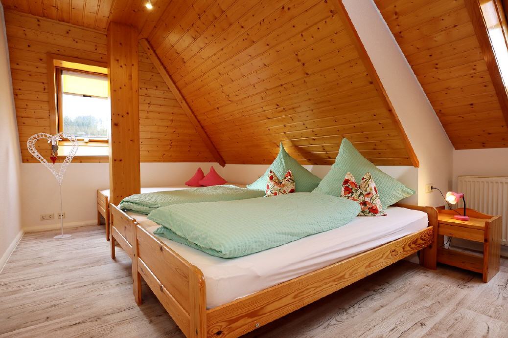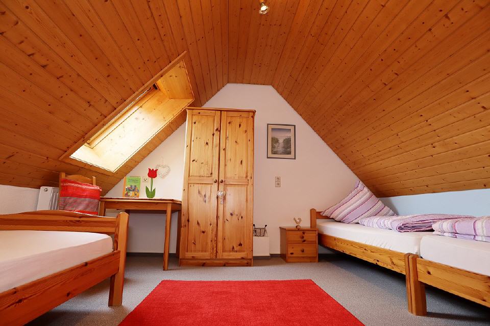 - Im 2. Obergeschoss ist ein weiteres Zimmer mit drei Betten.