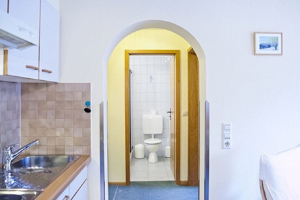Die Ferienwohnung besteht aus Schlafzimmer und Wohnraum mit Küchenzeile sowie Dusche/WC.