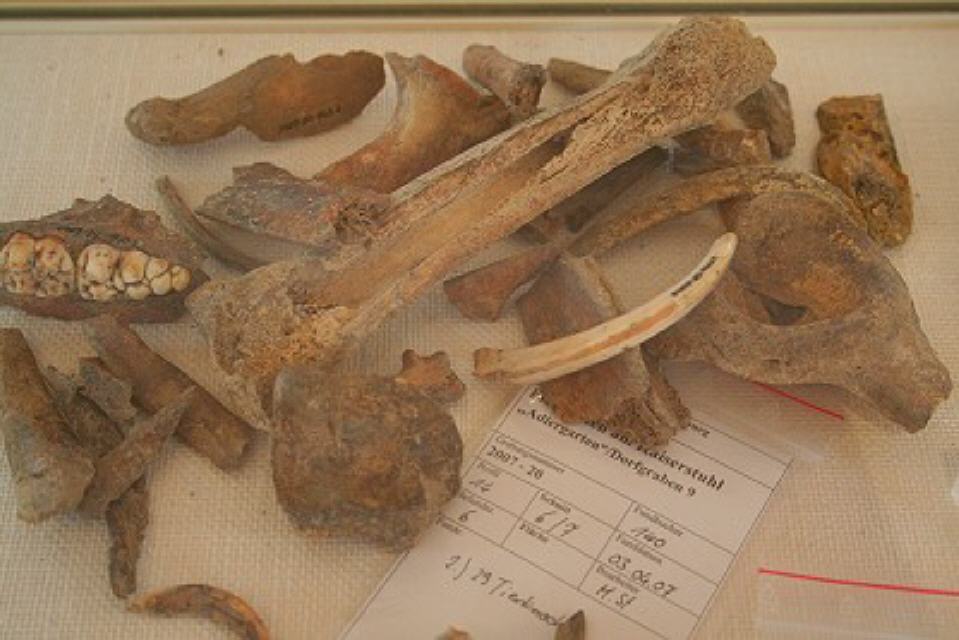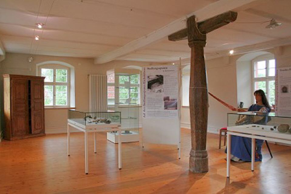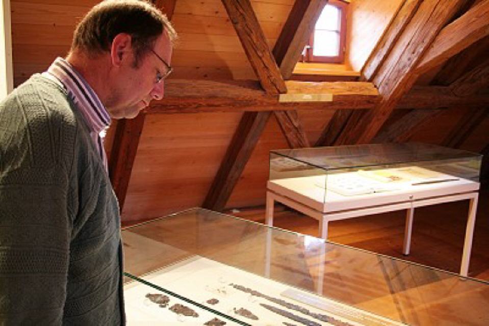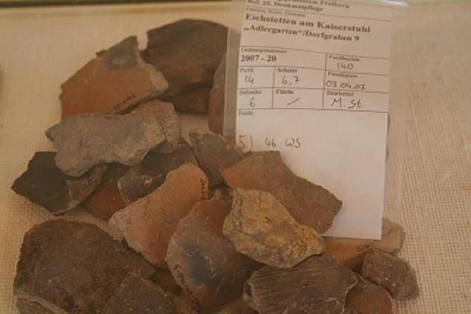Erdgeschoss: “Auf den Siedlungsspuren Eichstettens” – von der Römerzeit bis ins Hochmittelalter, Funde der archäologischen Lehrgrabung im Adler-Garten.