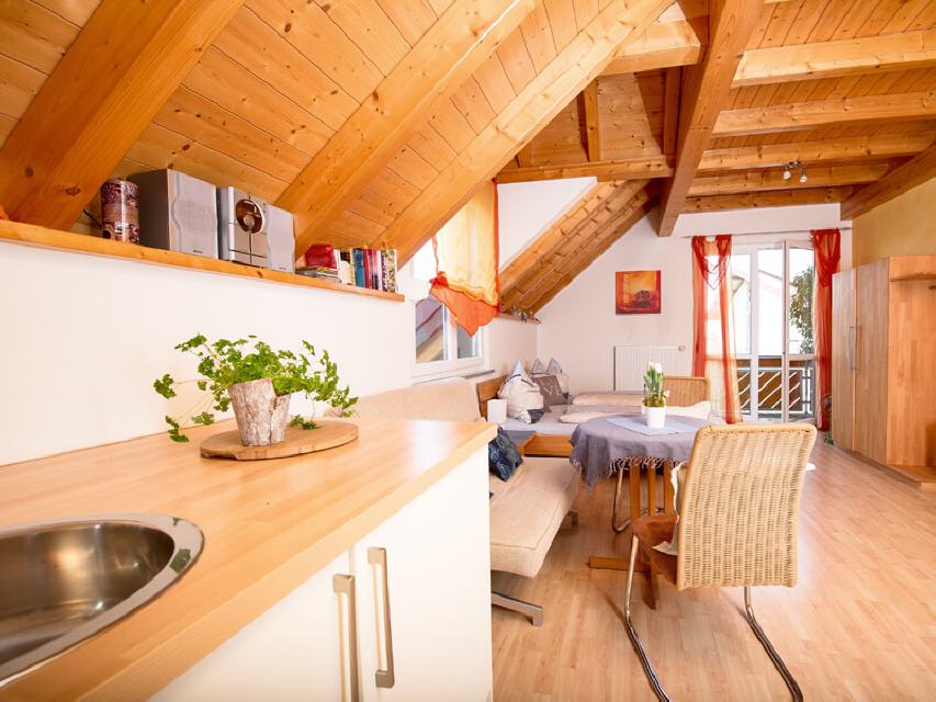 - Wohn-/Esszimmer in behaglicher, offener Holzbauweise