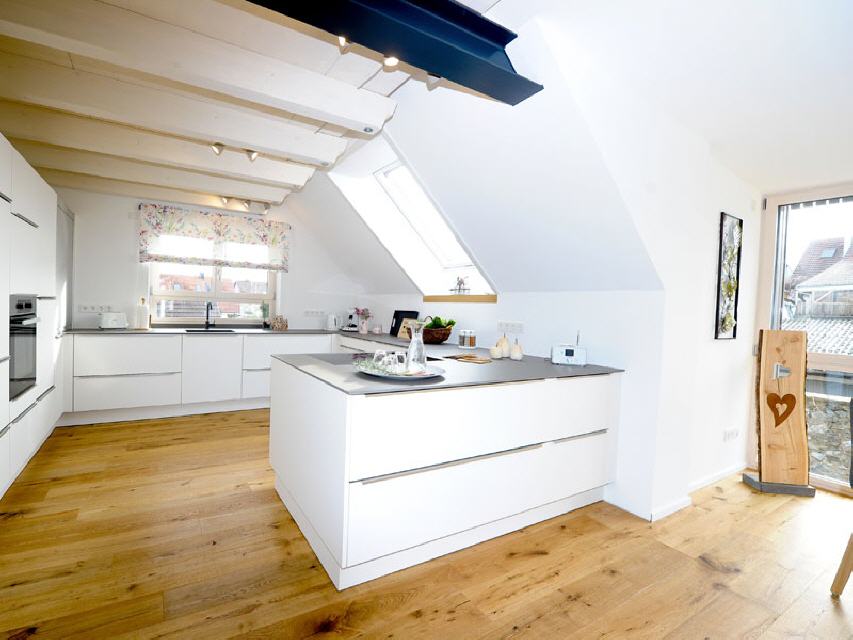 - Offene, vollausgestattete Wohnküche (Kühlschrank mit Gefrierfach,