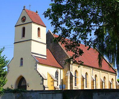 St. Peter und Paul. Die Anfänge der Kirchengemeinde St. Peter und Paul – soweit sie dokumentarisch nachweisbar sind – reichen bis in das 11. und 12. Jahrhundert zurück. Die älteste Kirche (1275) dürfte auf dem “Käppele-Acker” in Richtung Rheinweiler gestanden haben, später auch “niedere Kirche” genannt (ca. 30 Meter tiefer als die jetzige Kirche). Von der dann errichteten Kirche steht nur noch der Turm aus dem 14. / 15. Jahrhundert, in dem ursprünglich der Chor der Kirche lag, während sich das Kirchenschiff westlich anschloss.