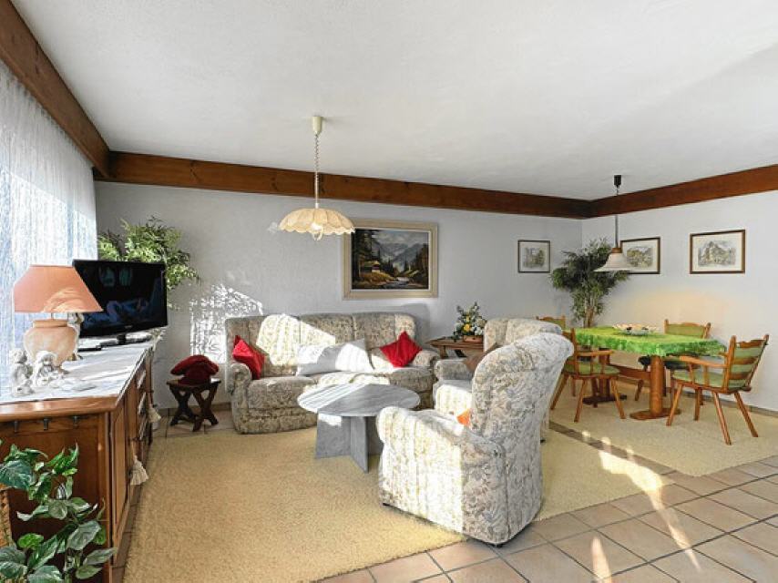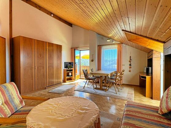 Ein Schrankbett und eine Schlafcouch im Wohnzimmer bieten Platz zum Schlafen für 2 weitere Personen