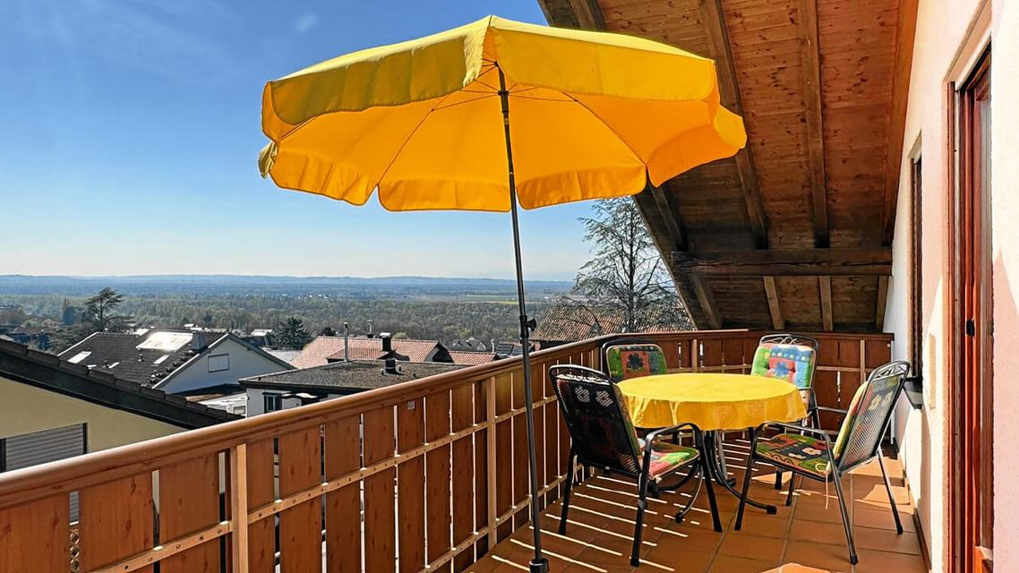Vom Balkon aus haben Sie auch eine herrlicher Aussicht über den Rhein nach Frankreich. Die Berge ganz hinten sind schon die Vogesen im Elsass. Und auch die Schweiz ist nicht weit. In ca. 20 Minuten sind Sie schon in Basel.