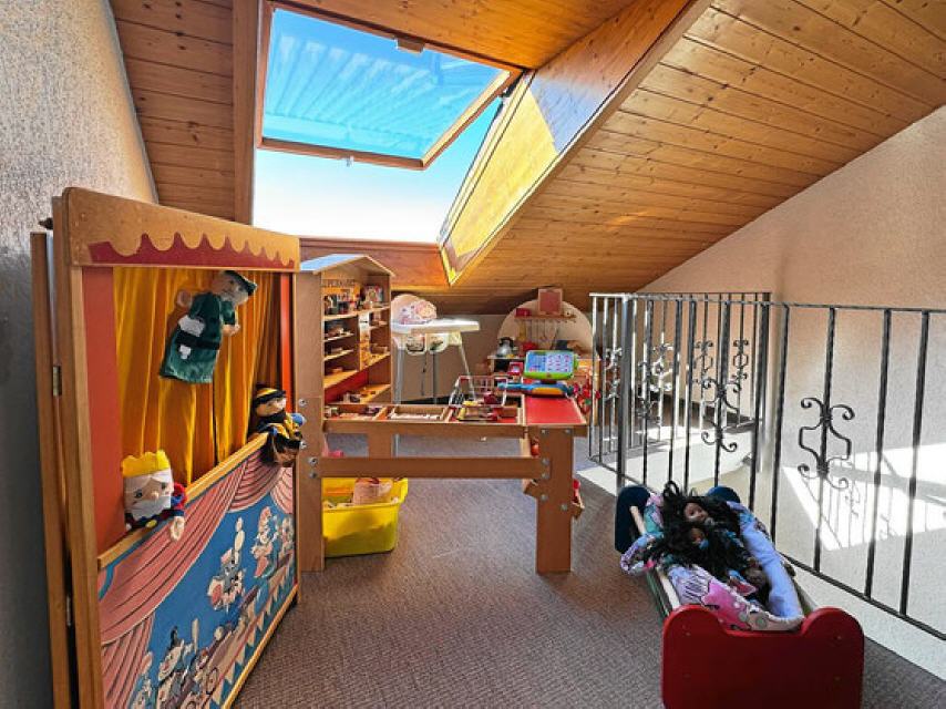 Die Dachfenster können mit elektrischen Aussenrolladen abgedunkelt werden. So bleibt es im Sommer schön kühl.