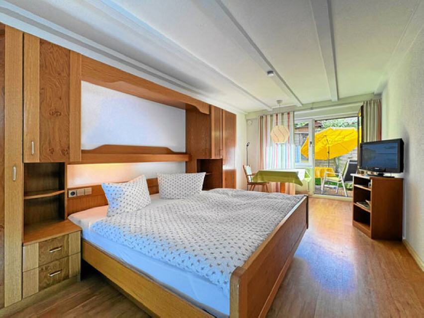 Gemütlich: Polsterstühle mit Armlehne, komfortables Doppelbett. Die Appartements 1 und 2 sind sogar mit hochwertigen Gesundheitsmatratzen von TEMPUR ausgestattet. Bettwäsche und Handtücher sind natürlich inklusive.
