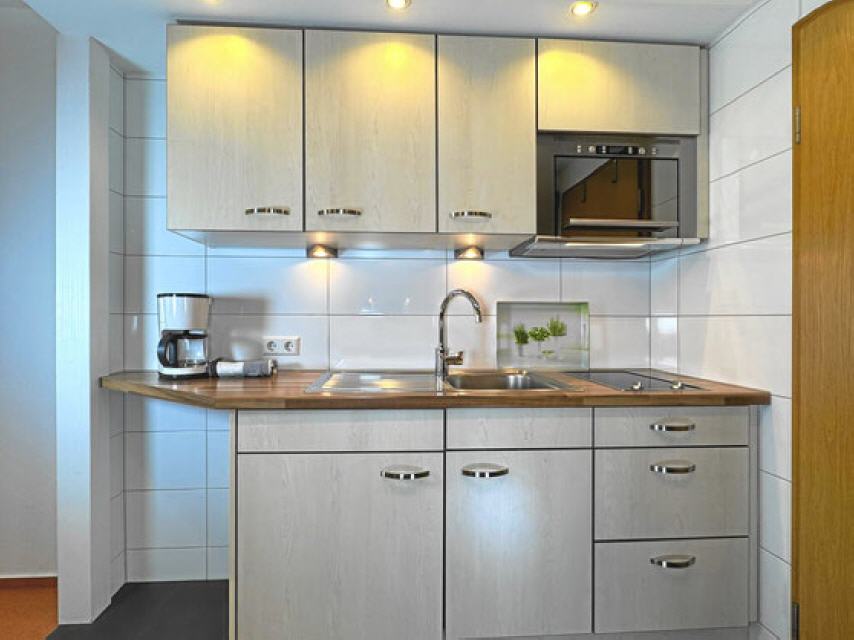 Voll eingerichtete Küche mit vielen Extras. Auch die Geschirrtücher sind Teil der Ausstattung.
