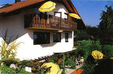 Das Gästehaus liegt in ruhiger, sonniger Halb-Höhenlage, direkt am Golfplatz zwischen der Wasserstretanlage und dem Aussichtspunkt bei der Kapelle “Maria Hügel”. Vermietet werden 2 große Ferienwohnungen für je 2 bis 4 Gäste. Und 4 kleine, preiswerte Ferienappartements für je 1 bis 2 Personen. Alle Ferienwohnungen und Apartments haben einen Balkon oder eine Terrasse. Bild antippen!