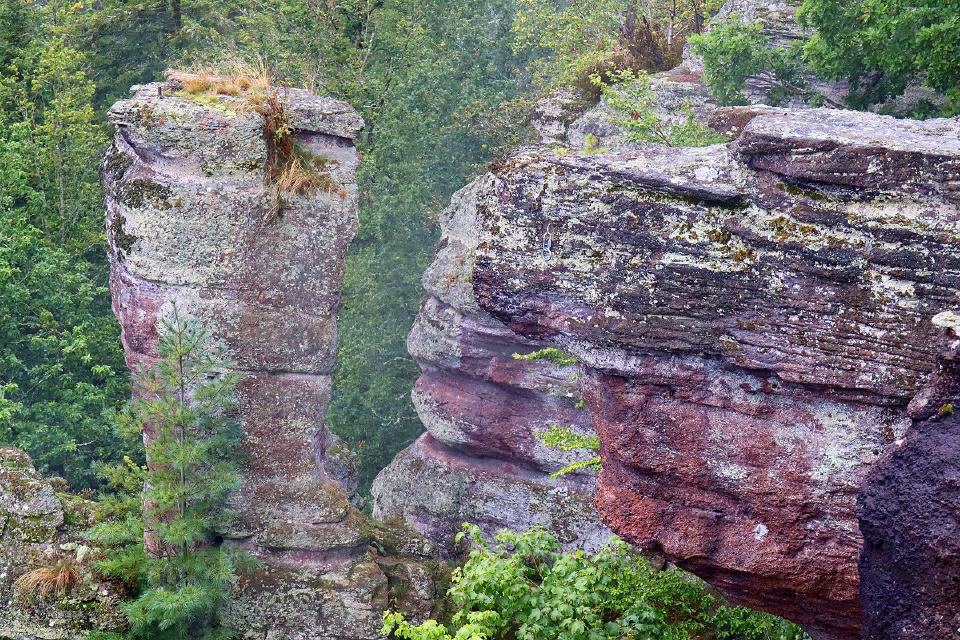 Die imposanten Falkensteinfelsen in Bad Herrenalb sind sowohl beliebtes Ausflugsziel für Wanderer und Kletterer als auch ein markantes landschaftliches Wahrzeichen der Stadt.
