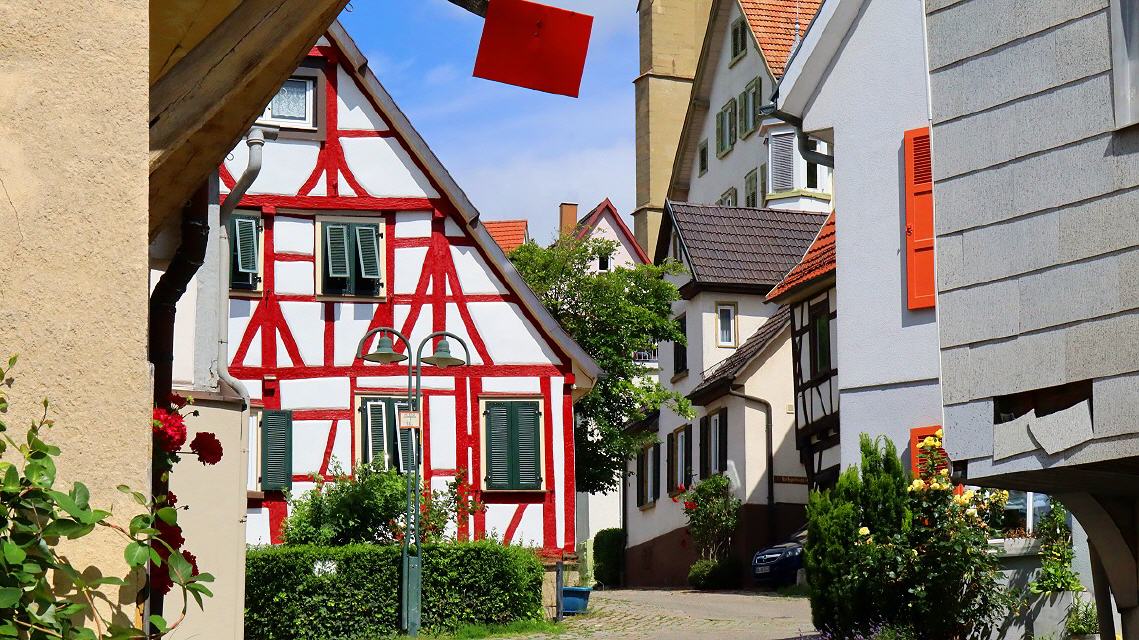 Die Fachwerkbauweise ist typisch für das 15. Jahrhundert, vor allem die Verblattungen (zwei miteinander zu verbindende Balken werden beide so ausgeschnitten, dass sie plan übereinander zu liegen kommen) sowie die starken Geschossvorkragungen. Diese sind auch beim Gebäude Stuttgarter Straße 22 zu sehen (linker Teil des Gebäudes). Wohl seit Beginn des Deutschen Kaiserreiches 1871 gab es in der Stuttgarter Straße 18 die Gaststätte „Zum Deutschen Kaiser“, die bis 1989 bestand. 1990 wurde das Gebäude renoviert und dabei nach alten Befunden die originale Bemalung des Fachwerks in Ocker mit Schmuckstrichen an den Rändern der Gefache wiederhergestellt. Bei Grabungen im Keller des Gebäudes entdeckte man sogenannte Nachgeburtsbestattungen. Vom Mittelalter bis ins 19. Jahrhundert war es ein verbreiteter Brauch, die Plazenta in Töpfen im Keller zu vergraben, um das neugeborene Kind vor bösen Einflüssen zu schützen. Ähnliche Funde sind aus der näheren Umgebung, z.B. aus Sindelfingen, aber auch aus dem Heilbronner und Ludwigsburger Raum bekannt.
