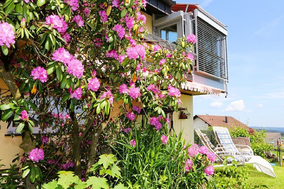 - großes Panoramafenster in den Garten und auf die Landschaft