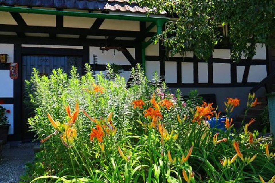 Doch nicht nur ihre Fenster schmücken die Sasbachwaldener mit Blumen, mitten im Dorf finden sich wunderschöne Vorgärten, in denen es in allen Farben blüht. Bei der Blütenpalette handelt es sich um blaue und weiße Petunien, rote und rosa Geranien und leuchtendgelbe Pantoffelblumen. Es gibt sogar eigens eine Blumenkombination, die den Namen “Saschwaller Mischung” trägt.