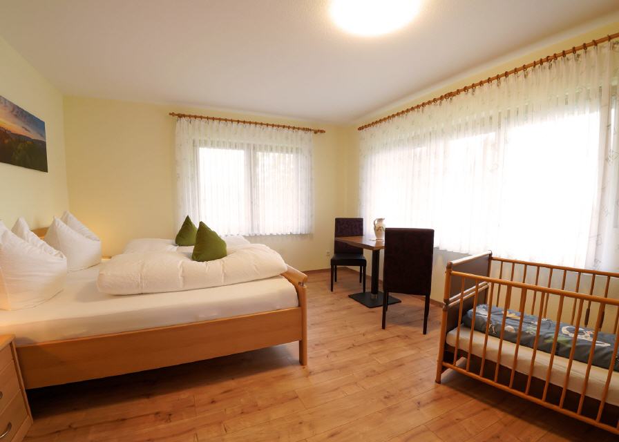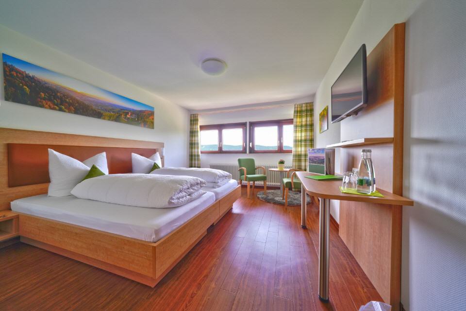 Es sind Nichtraucher-Gästezimmer. Aus den Fenstern haben Sie Panoramablicke auf das Renchtal und die umliegenden Schwarzwaldberge gen Westen. Die Zimmer sind ohne Balkon.