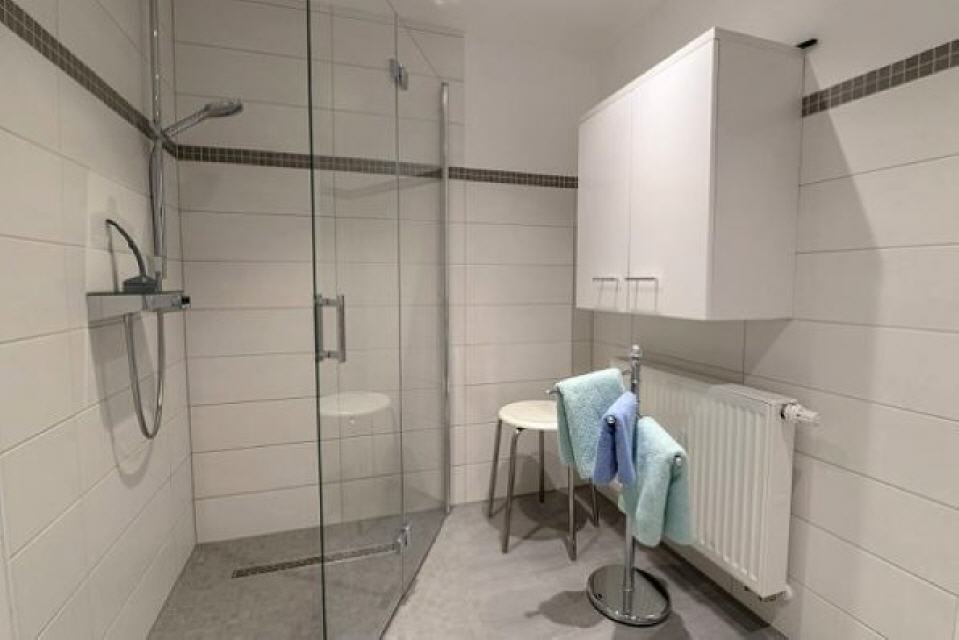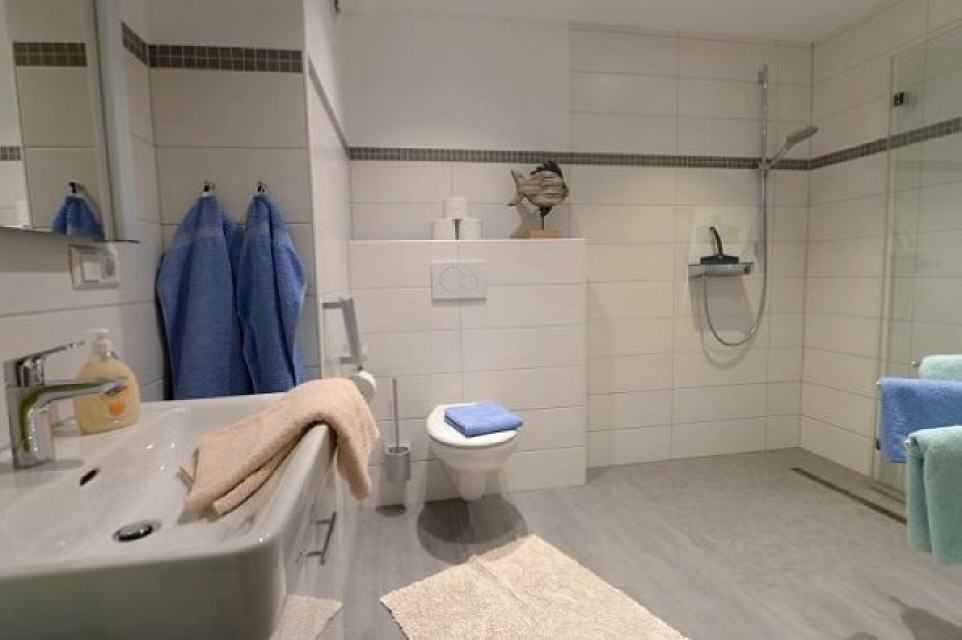 Bad (seniorengerecht) mit ebenerdiger Dusche, Badewanne, Waschmaschine, sep. WC