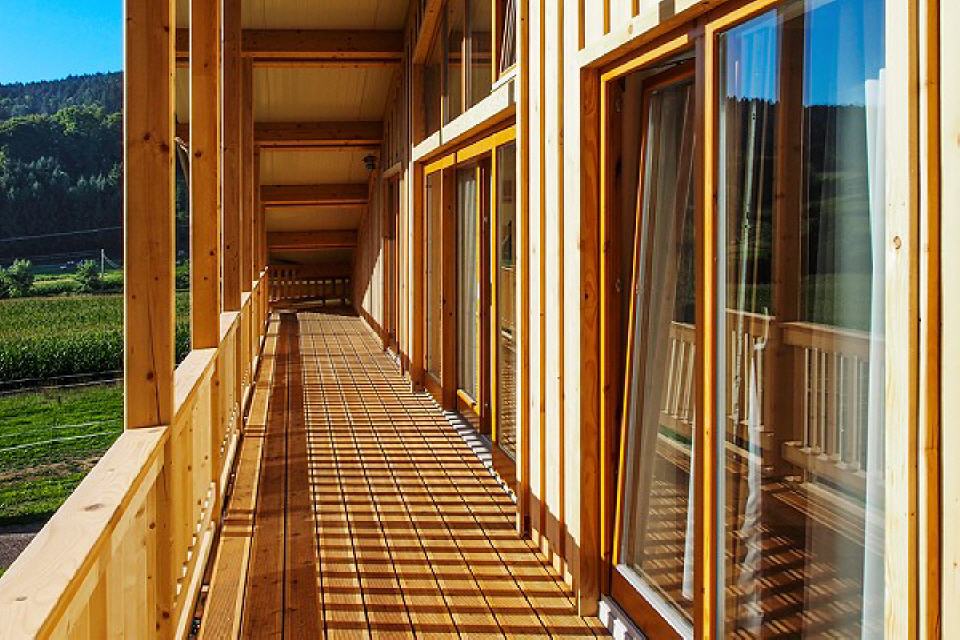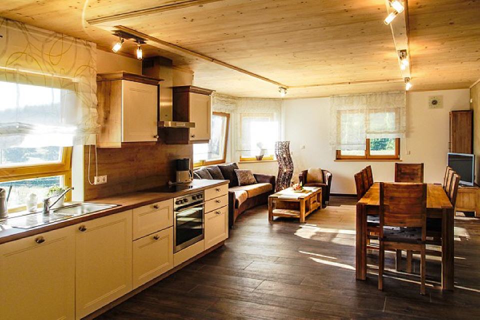 Unsere Landhäuser im Blockhausstil haben zwei Stockwerke und genug Schlafplatz für bis zu 16 Personen. Auch zum Feiern oder kreativ sein steht ausreichend Platz zur Verfügung: bis zu 60 Personen können in unserem Gruppenaufenthaltsraum Workshops durchführen oder auch das ein oder andere Fest feiern. Direkt dabei, im neuen Sanitärgebäude, befinden sich die ganzjährig solargeheizten Sanitäranlagen. Sie müssen aber nicht gleich mit der ganzen Fußballmannschaft anreisen – die kleinen Landhäuser werden bereits ab 8 Personen vermietet. Allerdings sind sie so beliebt, dass wir Ihnen eine frühzeitige Buchung empfehlen.