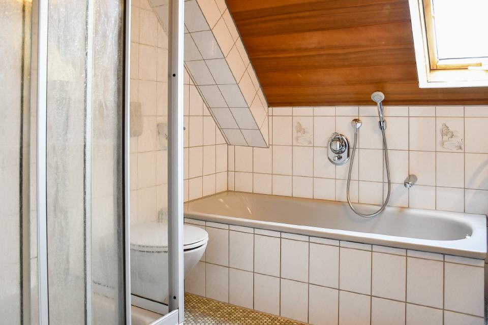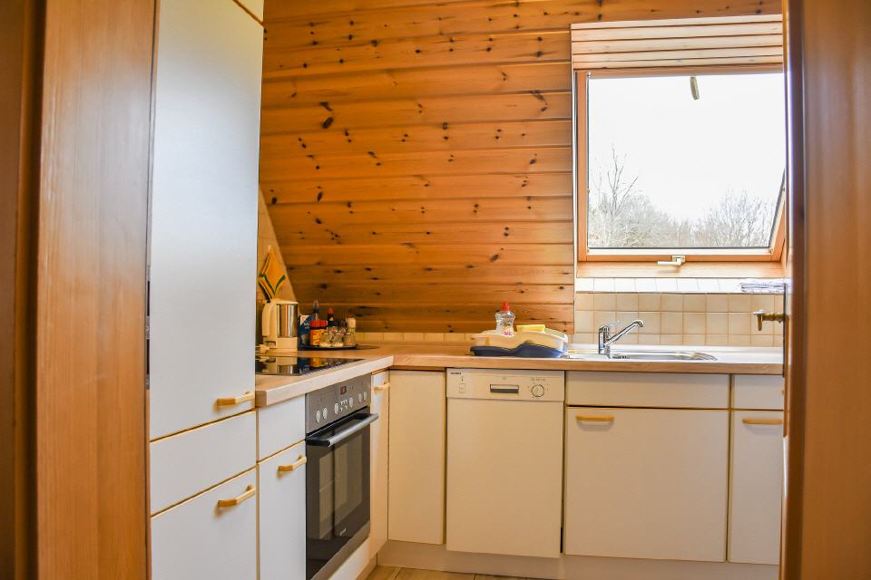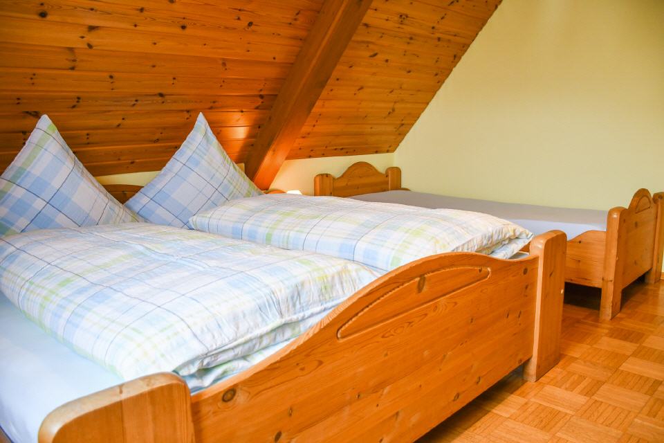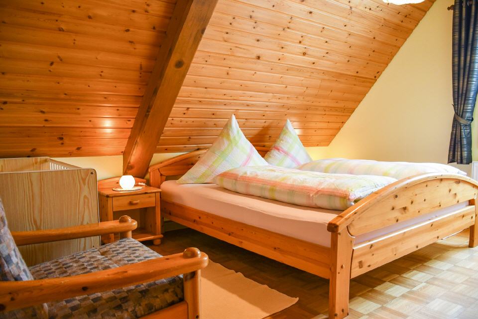 Die Wohnung (Dachgeschoss) ist sehr großzügig angelegt (ca. 75 qm) und bietet Platz für bis zu 4 Personen. Beheizt wird die Wohnung über einen mit Holz befeuerten Kachelofen, welcher der Wohnung eine ganz besondere Atmosphäre verleiht. Die Wohnung besteht aus einem großen Wohnzimmer, Küche, Bad mit Dusche und WC, einem Doppelzimmer und einem Dreibettzimmer. Eine weitere Schlafmöglichkeit bietet sich auf einer Wohn- / Schlafcouch im Wohnzimmer. Zur Wohnung gehört eine Terrasse mit einer Sitzgarnitur, Gartenmöbel sind auch vorhanden. Ein TV-Gerät mit Satellitenanschluss steht zur Verfügung.