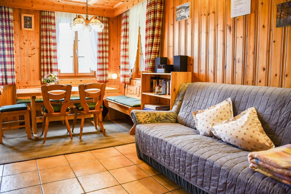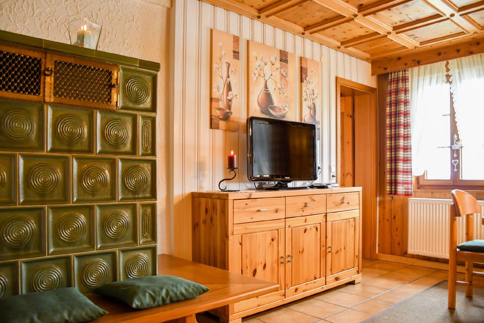Die Wohnung (Erdgeschoss) ist sehr großzügig angelegt (ca. 70 qm) und bietet Platz für bis zu 4 Personen. Beheizt wird die Wohnung über einen mit Holz befeuerten Kachelofen, welcher der Wohnung eine ganz besondere Atmosphäre verleiht. Die Wohnung besteht besteht aus einem großen Wohnzimmer, Küche, Bad mit Dusche und WC, zwei Doppelzimmer und einem Stockbettzimmer. Zur Wohnung gehört eine Terrasse mit einer Sitzgarnitur, Gartenmöbel sind auch vorhanden. Ein TV-Gerät mit Satellitenanschluss steht zur Verfügung.